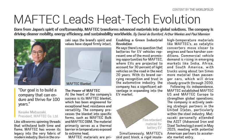 また、The Worldfolio社の「The “Hidden Champions:” Invisible Yet Essential to Global Industry」(隠れたチャンピオンたち:世界の産業に不可欠な存在)という特集でも紹介されていますので是非ご覧ください。