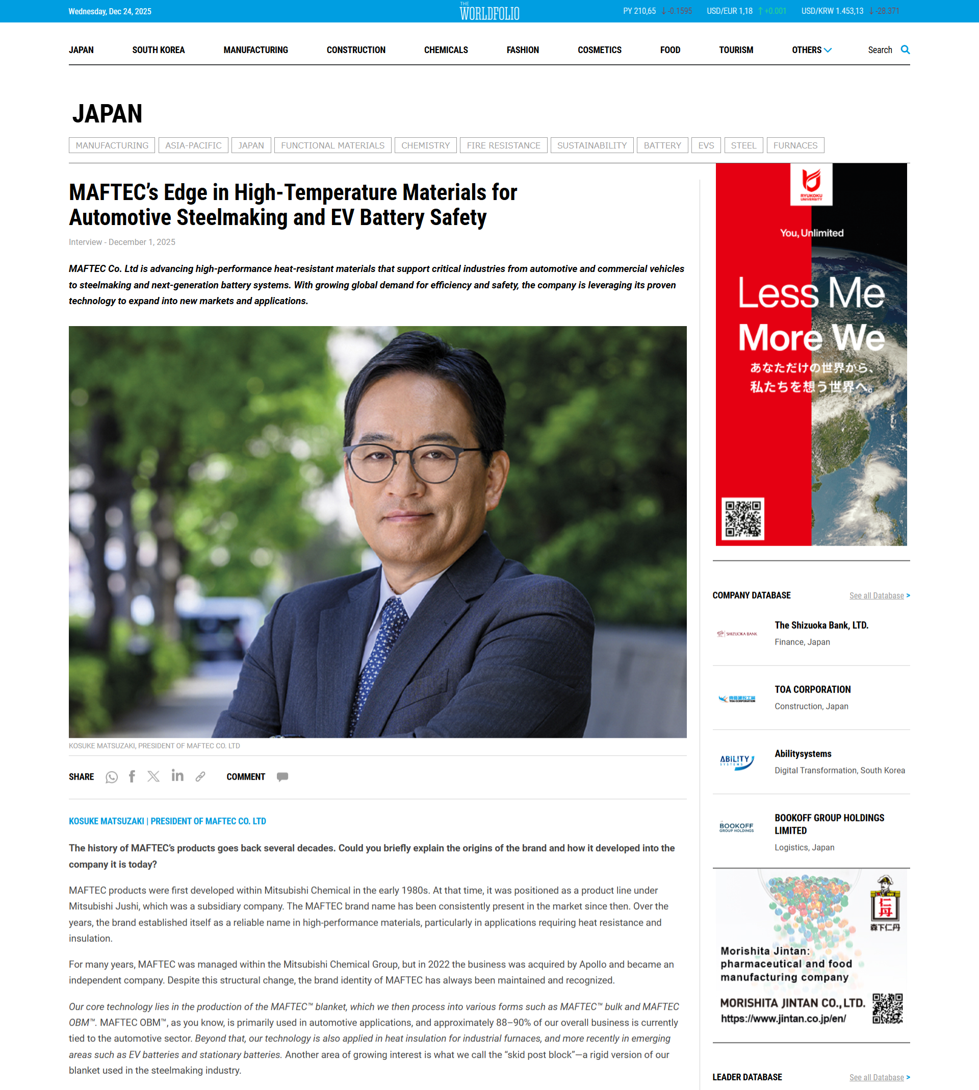 The Worldfolio社は英国の通信社が運営するグローバルニュースサイトで、世界各国の企業のリーダーや経済学者などにインタビューを行い、ビジネスや経済に関する信頼性の高い情報を発信するメディアです。